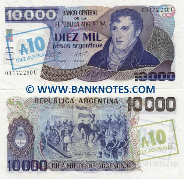 Texts: Banco Central de la Republica Argentina; Diez Mil Pesos Argentinos; Diez Australes. |