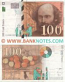 500 Francs 12.9.1946 (Obverse: French writer, politician, diplomat, historian and founder of Romanticism in French literature François-René de Chateaubriand (1768-1848) holding a lyre. Saturn among clouds. Vertical rectangles in a purple background are some works of the writer: "The Adventures Of The Last Abencerages"; "René"; "The Martyrs". The vignette has an Art Deco style. Reverse: Meditative muses. Two lyres and a cornucopia. Vertical rectangles in a purple background are some works of the writer: "Atala, The Genius of Christianity", "Memoirs From Beyond The Grave"; "The Natchez". Watermark: Profile of a woman overcome by flame of genius. Predominant colour: Purple. Artist: Eugène Robert Pougheon. Engravers: André Marliat (obverse) and Roberto Armanelli (reverse). Signatures: Jacques Belin (Le Controleur Général); Pierre Rousseau (Le Caissier Général); René Favre-Gilly (Le Secrétaire Général). Issuer: Bank of France. Date of Issue: 20 May 1946 to 12 September 1946 (1945–1953). Material: Cotton paper. Printing technique: Polychrome. Printer: Banque de France (BdF)) (Series & Serial # T.96/Nº239331419) (circulated) F-VF