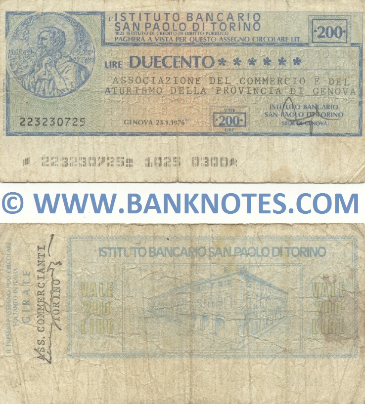 IT-IBSPTCC 200 Lire 23.1.1976 (Ist-to Banc. S.Paolo di Torino) Fine 1.00 [Photo] [Add-to-Cart] (223230725) Sede di Genova