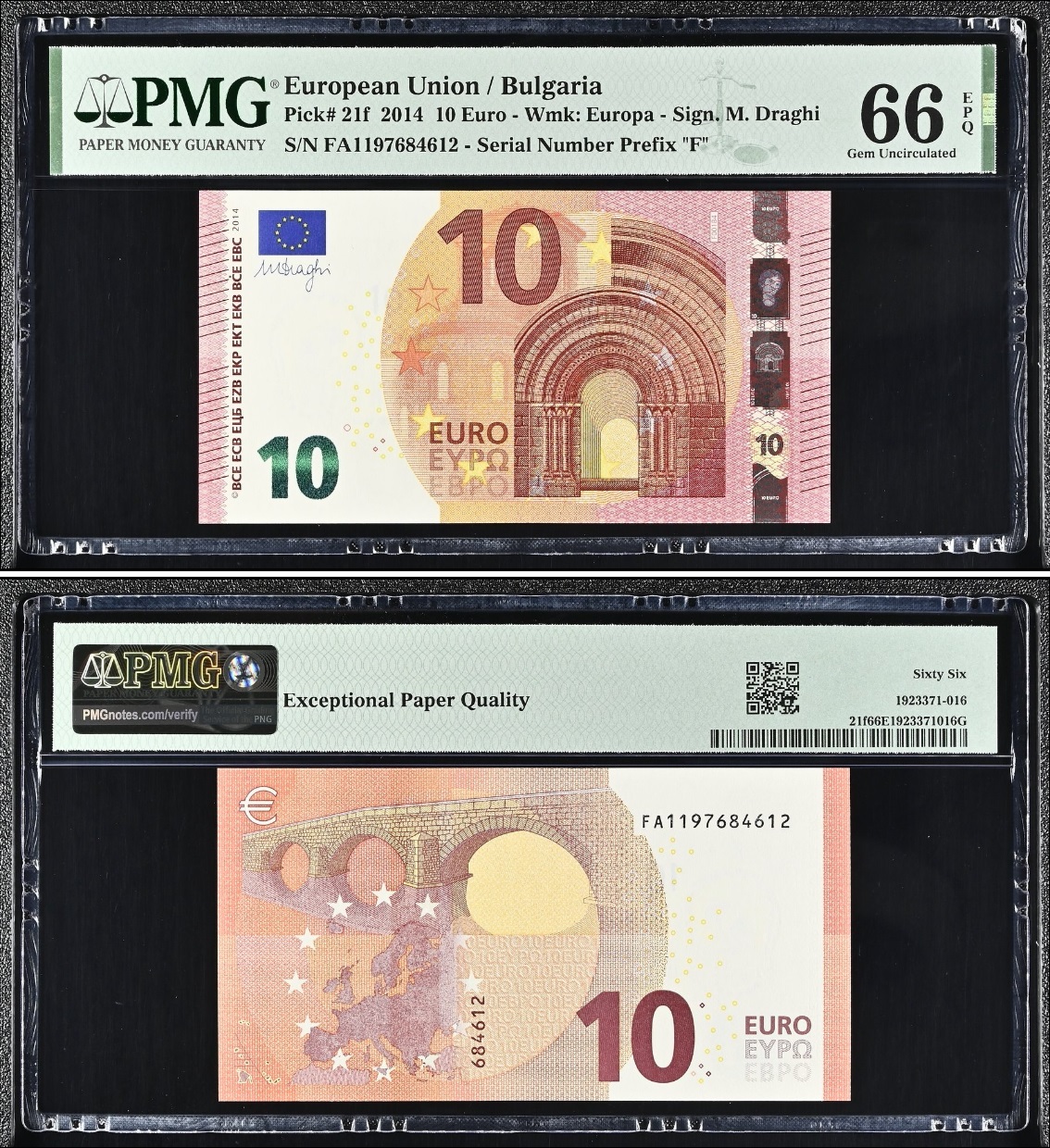 Click here to view - Misidentified by PMG and "confirmed" by auction "expert". Bulgaria in 2025 is not even in the Eurozone yet. This banknote may have been printed by Oberthur in Bulgaria (F) but the serial number prefix indicates it is assigned to Malta (F). According to this logic all world banknotes printed by ABNC in the USA should be assigned to the United States?