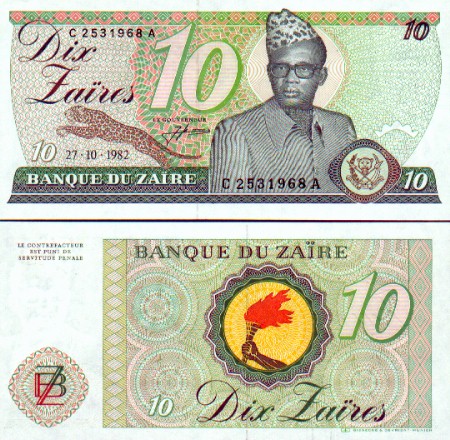 10 Zaires 30.6.1976 (Mobutu; Arm